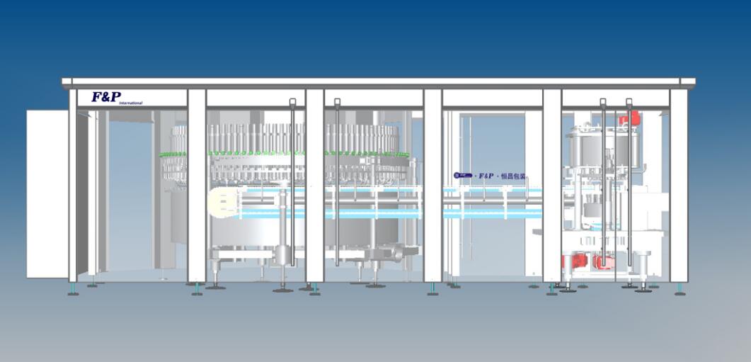 該機由恒昌包裝自主研發(fā)設(shè)計,適用于啤酒、含氣飲料的灌裝。灌裝機與封罐機整合成一體機,采用伺服分離傳動,連續(xù)完成灌裝及封蓋過程。